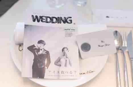新婦様がお色直しで絶対に着たい!と思われていたのが珍しいブラックドレスでした。出会えた運命の1着に合わせて、ペーパーアイテムや装飾などもブラックとホワイトを基調にコーディネート。とってもオシャレな空間に仕上げられました。 プロフィールブックは流行りのPOPEYE風に。同級生だったおふたりらしい恋愛歴なども掲載をされ、大盛り上りだったそうです。