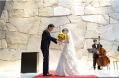 おふたりが選ばれたのは、参列して下さったゲストに結婚を誓う「人前式」。新郎貴志さんが入場しながらゲストから手渡された「ひまわり」をブーケにして、新婦明子さんに渾身のプロポーズ。ブーケセレモニーを行いました。一輪一輪にゲストからのおめでとうの気持ちが込められたブーケと、ゲストからの拍手がおふたりの結婚の証となりました。
