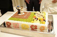 ウェディングケーキはおふたりらしさを大切にデザインを考えられたおふたり。新郎様は小さい頃から野球が大好きということで、おふたりが野球をしているマジパン人形をトッピング。新郎様の野球帽がポイントとのこと。また新婦様は花柄デザインが大好きで、ウェディングケーキの側面を花柄に♪おふたりの大好きがたくさん詰まったウェディングケーキはゲストからも好評で、こだわってよかったとお話しくださいました。