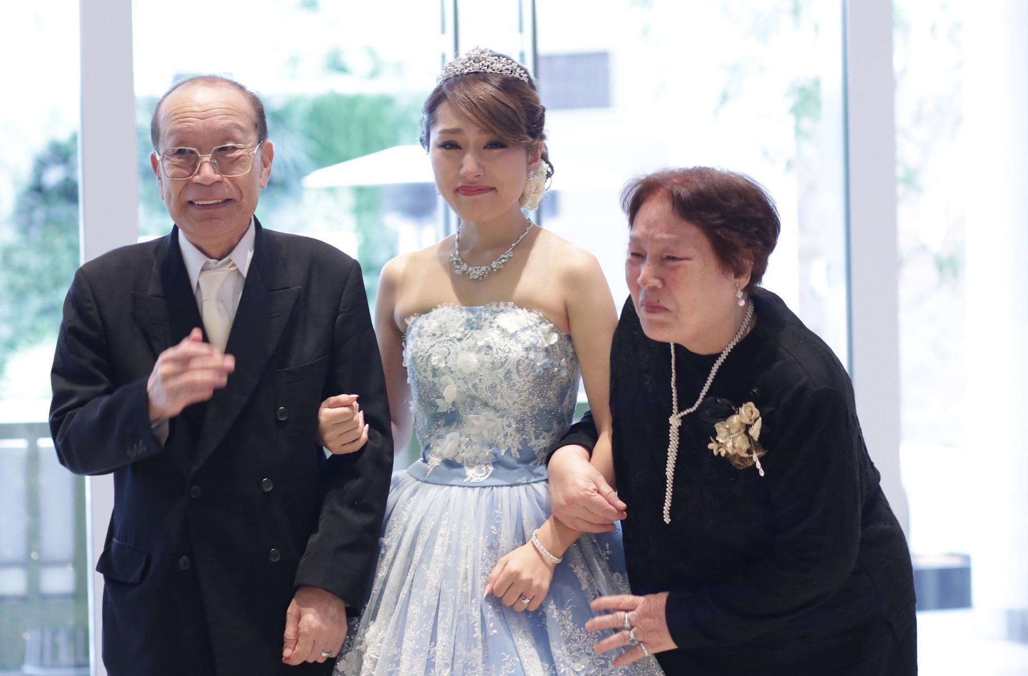 当日は、両親へのサプライズのシークレットムービーからのバージンロード。両親も私自身も思い出がたくさん蘇ってきて、感動してたくさん泣きました。やっぱり、石壁の祭壇がとても綺麗できてくれていた皆もすごく綺麗なチャペルにドレスがはえて本当に感動した!こっちまで涙がでたよといっぱい言ってもらえました。