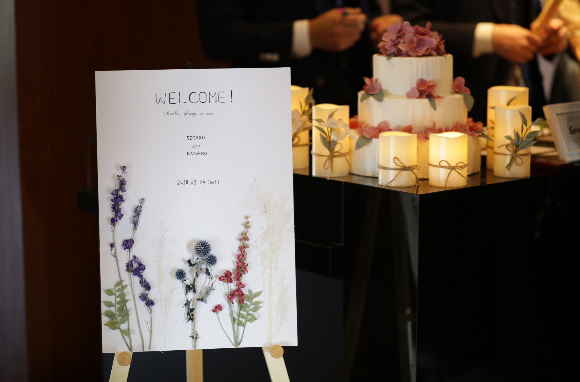 センス溢れるおしゃれな新婦様が、たくさんDIYアイテムをご用意されました。ボタニカルな雰囲気に包まれた受付から、すでにおふたりらしさが♪
