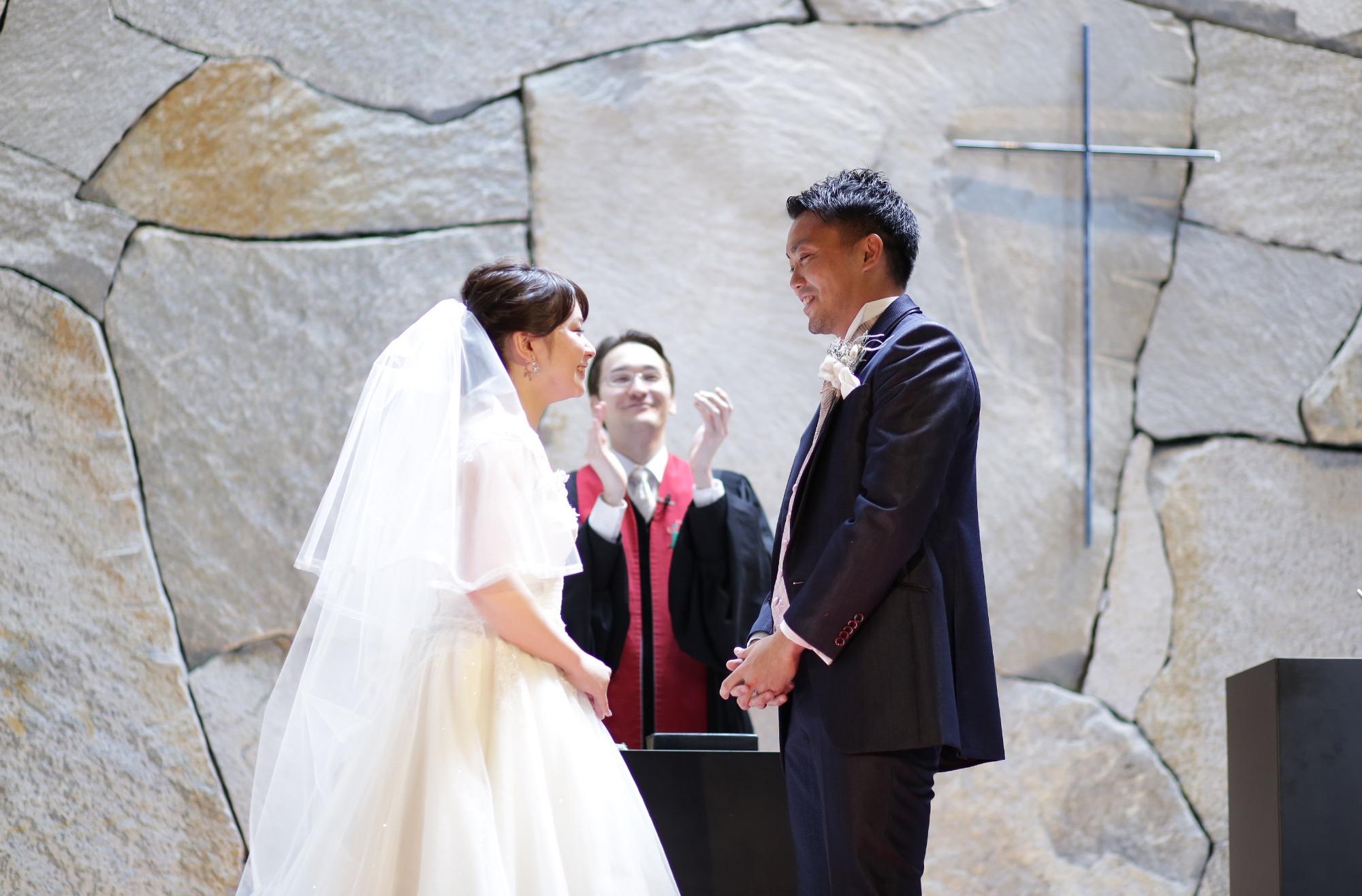 大切なお母様からのベールダウン。お父様から新郎様へのバトンタッチ。ゲストにあたたかく見守られながら、誓うことば。