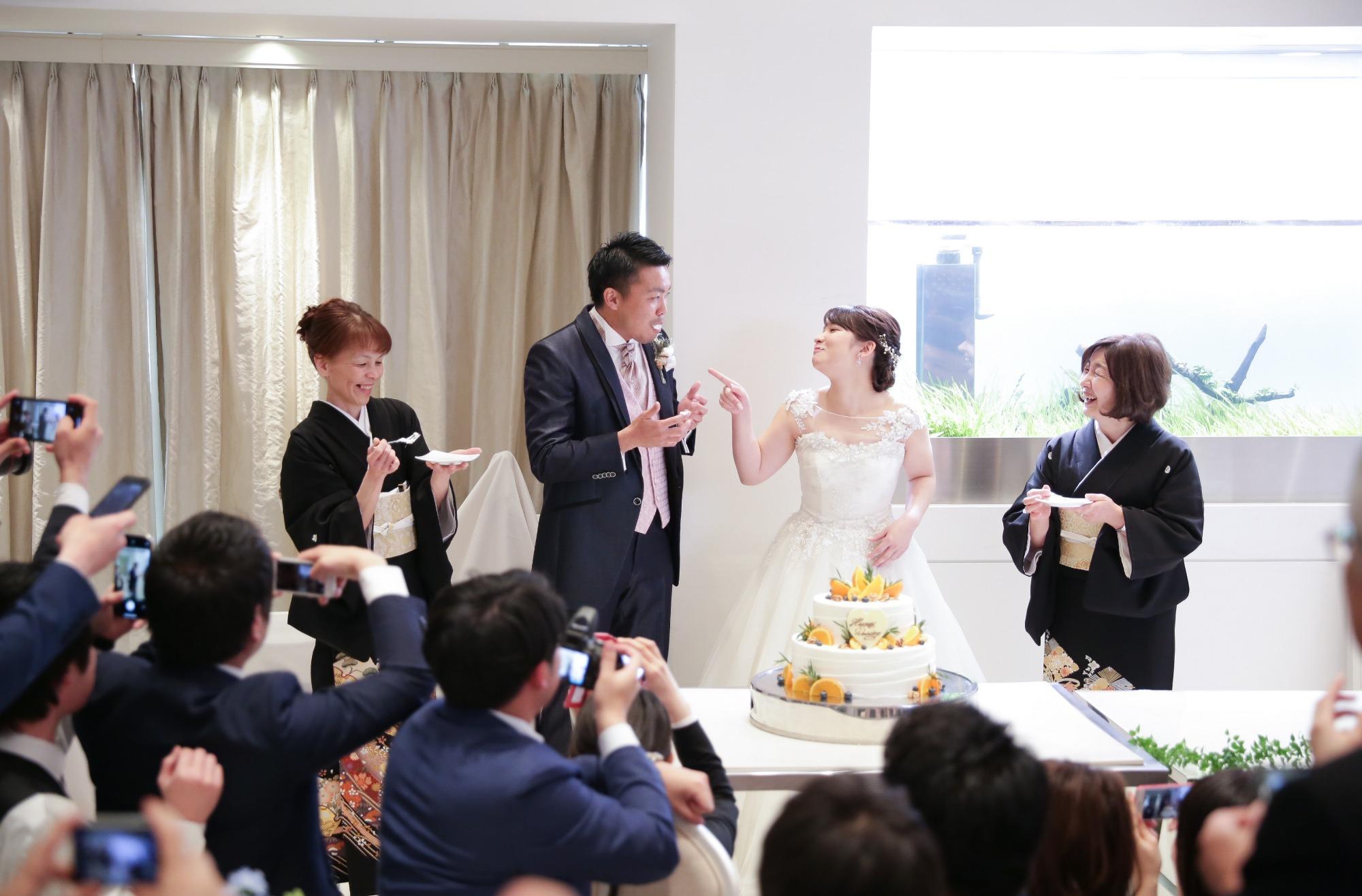 美味しいゴハンで育ててくださったお母様から「ラストバイト」。大好きな3姉妹・可愛がってくれた祖父母とお色直し退場。ご家族へのサプライズ演出で、感謝の気持ちを表されました。