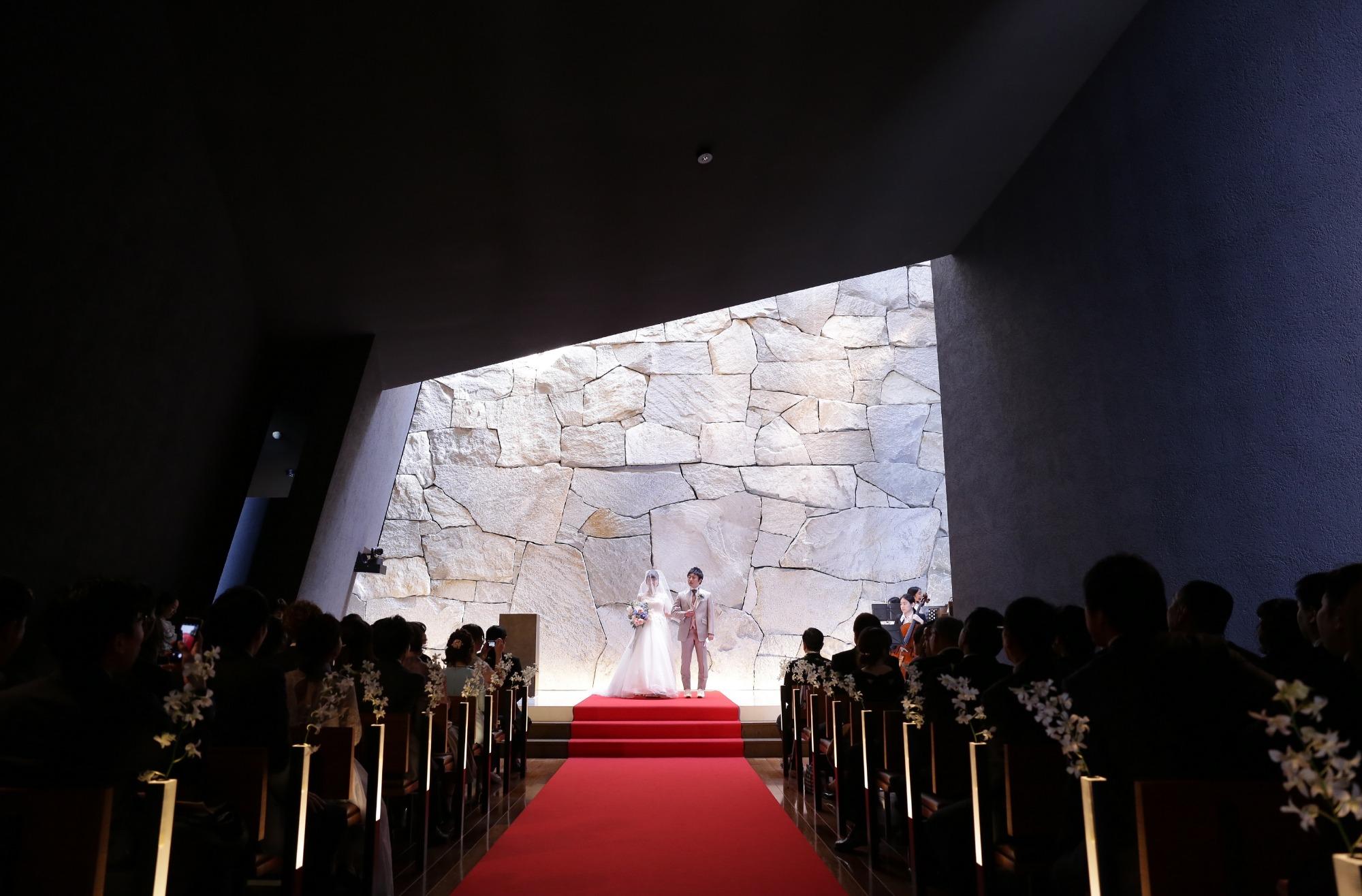 チャペルのオーラに2人とも圧倒されました! 見学の際、チャペルに入ったとたん背筋が伸びて緊張したのを覚えています。 まさに「記憶に残る」チャペルで、一度見ると頭から離れませんでした。