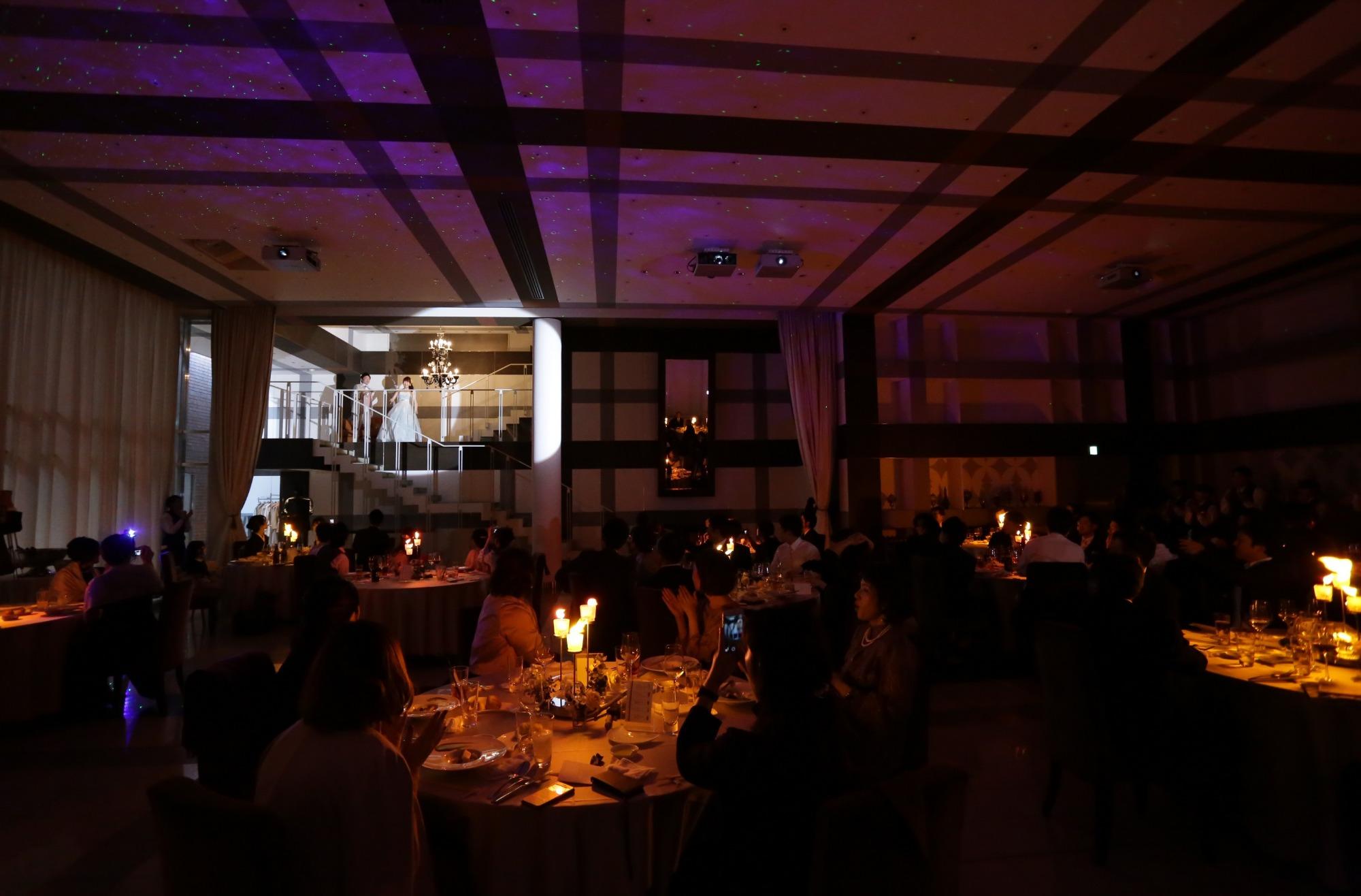 挙式は緊張感を持ってきっちり。 披露宴では明るく!楽しく!を テーマにメリハリのある式にしたいと決めていました! 披露宴ではファーストバイト、キャンドルサービスをやらないと最初から決めており、その代わりにオープニングムービー、バルーンリリース、お色直し入場の際にプラネタリウム&キャンドルイリュージョンを取り入れました! 全て大好評でした!