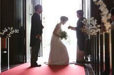 MiaViaのチャペル「GNOTI」の雰囲気に一目惚れされたお二人。式スタイルは、GNOTIの厳粛なイメージに合わせてキリスト教式を選ばれました。ご入場では、新婦様のご希望でベールダウンをお母様に行っていただきました。今まで新婦様のことを大切に育てられてきた親御様。たくさんの想いを込めてベールをおろしていただくセレモニーは、チャペル内を感動で包みました。