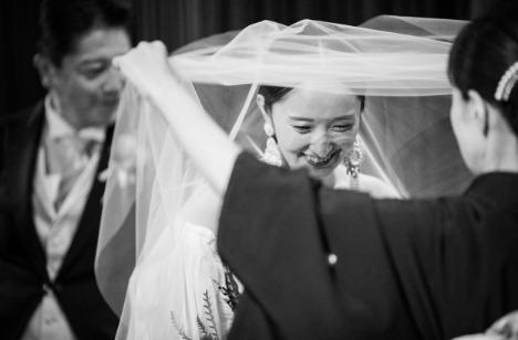 親御様との時間を大切にするため、リハーサルの時間に親御様とのご対面式を。サプライズの映像で過ごしたお時間を振り返って頂いた後、お父様にも感謝のお気持ちを添えてブートニアの贈呈をしました。立会人には、出会いのきっかけになったご夫妻に登場いただき、リングピローを運んでもらいました。