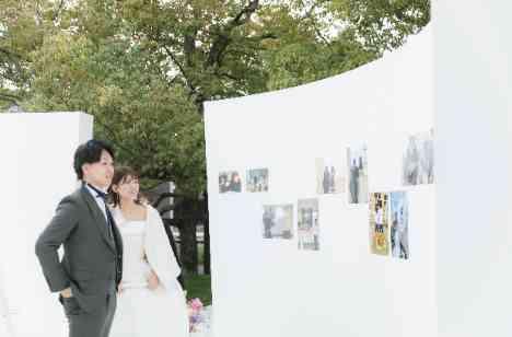 付き合って10年目だったことから、ソフィ邸のモニュメントに10年前と今とのbefore afterの写真を飾られました。天気は雨予報でしたが、無事雨は止み、ゲストの皆さまにもじっくりとお写真をご覧いただくことができ、大満足♪ 雨女雨男のおふたりは、雨も想定し、雨でも楽しめるMiaViaを選んでくださいましたが、その心配も無用でした!