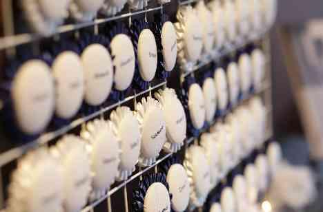 ゲスト一人一人に、名前入りのロゼットを手作りしました。受付に飾り、自分の名前を探してもらう楽しみを♪思い思いの場所に付けてもらうことで、全員お揃いで一体感を出せました。 友人が作ってくれていたウェルカムサインも特筆したいアイテム!とってもオシャレで受付でもパーティでもみんなたくさん写真を撮ってくれていました!