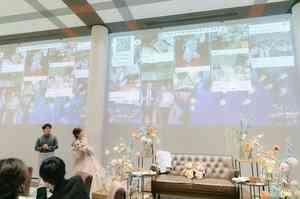全天候型の会場専用テラスでは、ウェルカムパーティやデザートブッフェ等おふたりらしいおもてなしが実現できる。迫力あるスクリーン映像演出はブライダルフェアで確かめて。ナイトウェディングも人気。