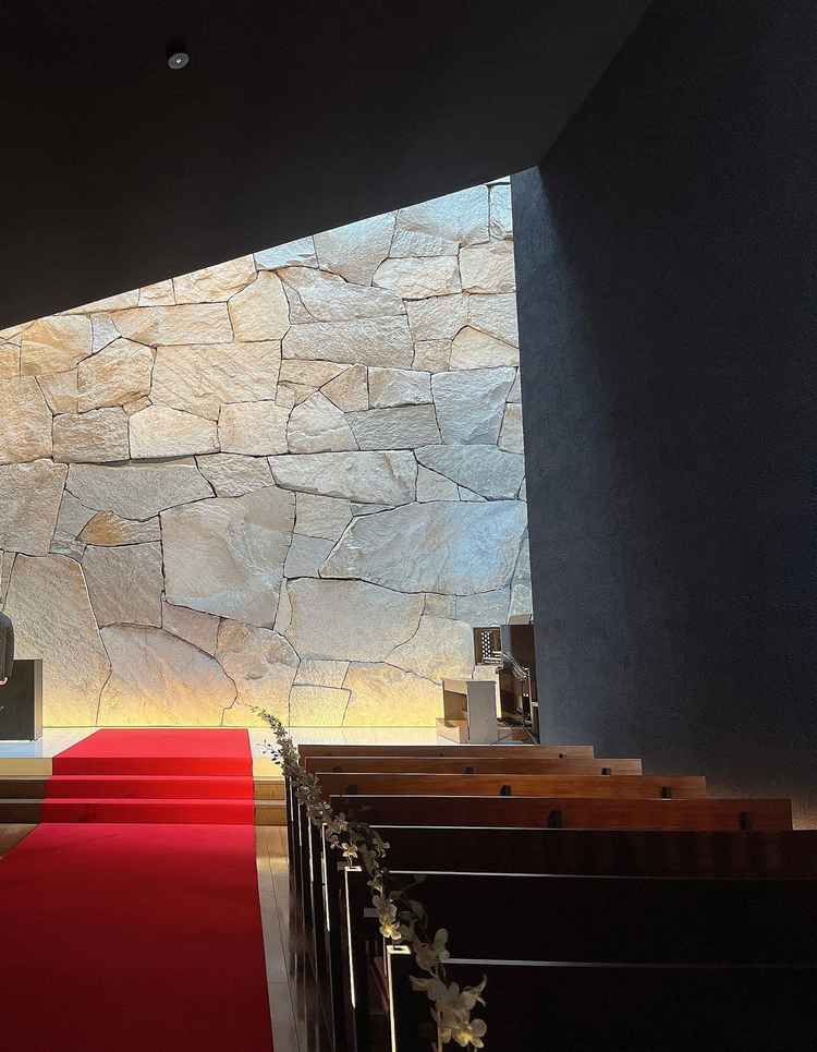 チャペルが他にない雰囲気でとても素敵です。自然も豊かで周りも公園なため、ゆったりとした空気感が流れており寛げます。