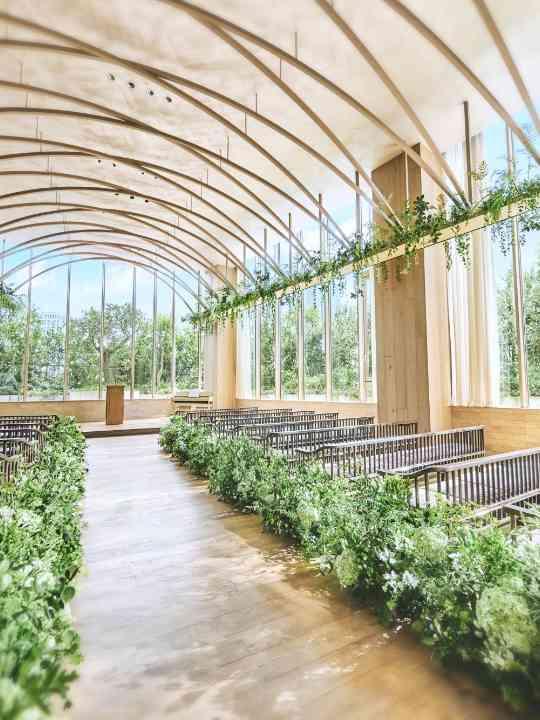 国内に居ながらリゾート気分を味わえる海の見えるチャペルや、一面に広がる青空が魅力の高層階チャペル、そして近年人気を集めているのが、自然を感じられる緑のきれいなチャペル。