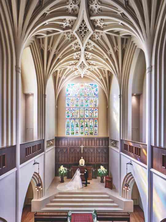 キリスト教の大聖堂の雰囲気を受け継ぐ、本格的な雰囲気が特徴の正統派チャペル。