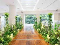 - 花のヴァージンロードと水の流れるスタイリッシュなチャペル