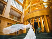 - 黄金色に光り輝く天井高42mの圧倒的吹き抜け空間のチャペル