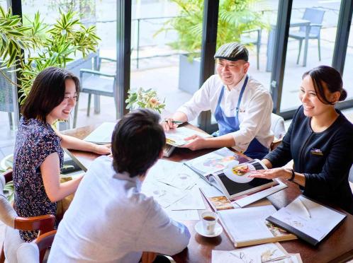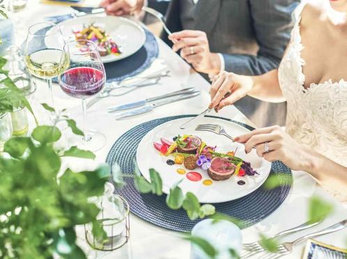 レストランも運営する当館。シェフこだわりの食材を使用し、おふたりに成り代わっておもてなし。幅広い世代から支持を受けるお料理を開放感あふれる会場でお楽しみください。
