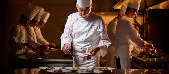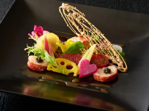 フレンチに和のテイストを加えたヌーベル キュイジーヌ ジャポネ。お箸で召しあがれるのでどなたにも食べやすく、ゲストの満足度も高い。オープンキッチンからすぐに届けられる料理は、適切な温度での提供が可能