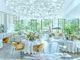 天井が高く2面の窓からは自然光が入る開放的な披露宴会場