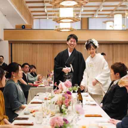 Kubotsuを実際に伺った際に、会場が横長であることで新郎新婦の位置から、親族も比較的近くに居られることは素敵だねと2人共が魅力に感じた点でした。実際の進行では感謝を伝えられる演出は何が良いか、夜の撮影はど