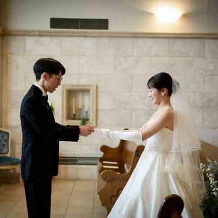 挙式前のファーストミートでは、普段はお手紙を書くことのなか新郎様が、この日のために初めて、新婦様へお手紙を書いて朗読。その言葉が届いた瞬間、新婦様は静かに涙をながされ、結婚式の1日が温かな空気で始まり