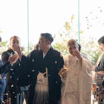 おふたりが選んだのはウェディングドレスではなく和装!和装のため人前式にしてより“おふたりらしい”挙式のお時間にしました。人前式ではゲストも参加できるように誓いの言葉はおふたり共通のお知り合いにお願いしま