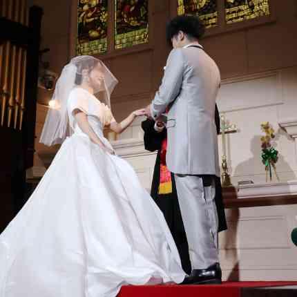 挙式は厳かな雰囲気の中で行われた教会式。 おふたりのお子様が、リングガールとして登場しました。 まだ幼いながらも一生懸命に指輪を運ぶ姿は、とても愛らしく、会場中が自然と笑顔に包まれました。 親御様はも