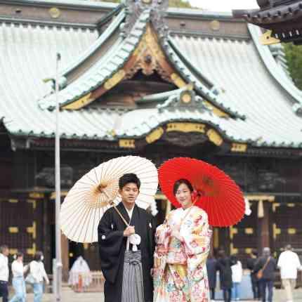 現在はお仕事の都合で浜松にお住まいですが、地元が三島の新郎新婦様。小さな頃から馴染みがあり、三島大社での神前式に憧れがあったそうで、大きくなったらここで結婚式がしたいとずっと思っていたそうです。白無垢