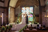 その先には本物のステンドグラスとシャンデリアが煌めく対面式チャペルへと繋がります。