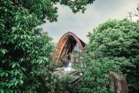 壁一面の窓から緑と自然光を望むチャペルは、木の温もりを感じるナチュラルな空間。愛犬との挙式も可能です。
