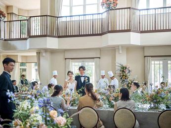 ご家族や近しいご友人をお招きして、アットホームに過ごすひととき。さいたま新都心駅直結徒歩1分の好立地がゲストに嬉しい。青空に包まれ柔らかな自然光の射し込む祭壇で誓いを立てたのちには、祝福のフラワーシャワーを。美食のおもてなしが幅広い年齢層のゲストに好評。