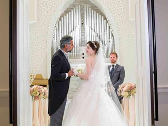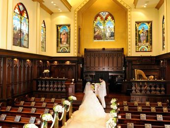 10メートルの大理石で覆われたバージンロードを親族・親しいご友人に見守られながら、より絆を深めてください。 これからの希望たっぷりの輝かしい未来が待っているお二人と両家ゲストの絆を紡ぐ温かな教会式が叶う本格チャペルを体験してください。