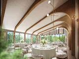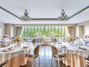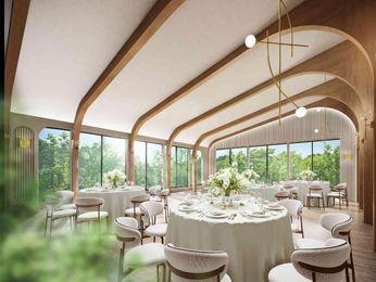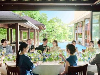 親しい方とだけで過ごす開放感溢れるプライベート空間。 少人数ウエディング専用会場として「別邸 SUISAI」がグランドオープン。“水”と緑を意味する“翠”の両方に彩られ、ゲストを寛がせることができる美しい空間。別邸専用のエントランス、テラスとオープンエアで繋がる会食会場でプライベート感も抜群。