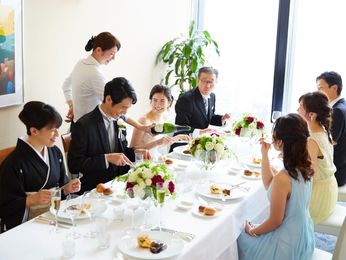 親族や親しいゲストだけを招き「華やかに、でも上品に」を叶える最旬のパーティに。少人数婚の方にもピッタリなゲストとの距離で、より一層おふたりの想いや感情が伝わり、きっと特別な思い出が生まれるはず。おふたりの自由なコーディネイトで独自の世界観を創り出して