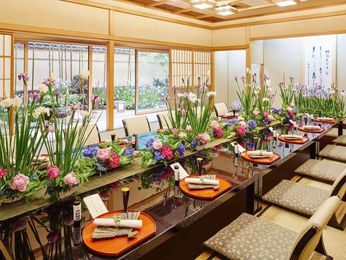 懐石料亭「花がすみ」内にあるお部屋は、 穏やかさのなかに古格をたたえる印象深いものとなっており、 祝宴のお席を格調高く演出致します。 開放的な窓が印象的で、箱庭を眺めると、誰もが心地よく和やかに過ごせるでしょう。 厳かさと同時に、どこかゆとりも感じさせてくれる空間です。