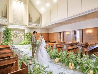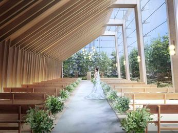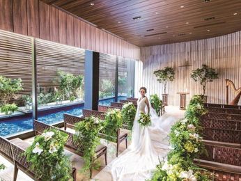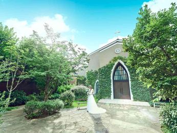 【表参道駅徒歩1分】緑に覆われたファサード(外観)を通り抜けると広がる緑豊かな中庭と独立型教会が二人を迎える。180年の歴史があるヨーロッパの教会を譲り受けた礼拝堂は、温かみ感じられる優しい造り。専属牧師と創りあげる挙式内容は二人の家族への想いをもとにしており、感謝の気持ちが伝わると話題に。