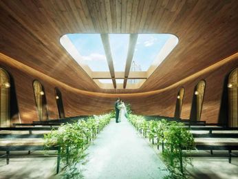 空・緑・光に包まれる透明感いっぱいのアトリウムチャペルに、やさしい白と木目のデザインを基調にした心地よいパーティ会場で振る舞う、こだわり抜いた料理の数々。1組貸切だからこそ叶えられる、ゲストと近い距離のプライベート感あふれるおもてなしを。