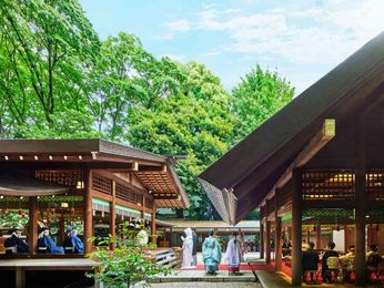 秋葉原や御茶ノ水駅から好アクセスでゲストも安心。730年の創建以来歴史を重ねた神社で、格式ある結婚式を叶えて。敷地内の明神会館はバリアフリー対応で居心地の良い空間。江戸の食文化と現代の技法の融合を愉しめる美食〈明神ガストロノミー〉にも注目を。