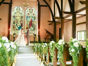緑と花に囲まれた独立型チャペル。木の香りと温もりを感じて行う挙式はゲストとの大切な時間をアットホームに演出します。大切なゲストが一人一人くつろいで過ごせるシンプルでアットホームな空間。おもてなしウエディングで理想の一日が叶う♪