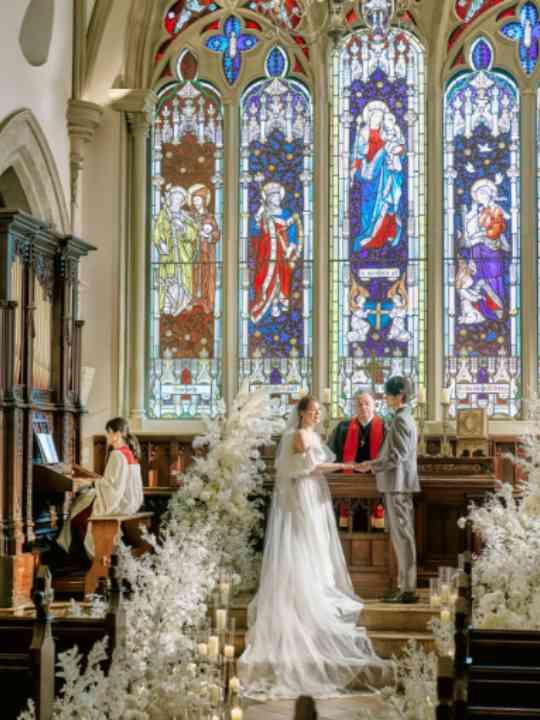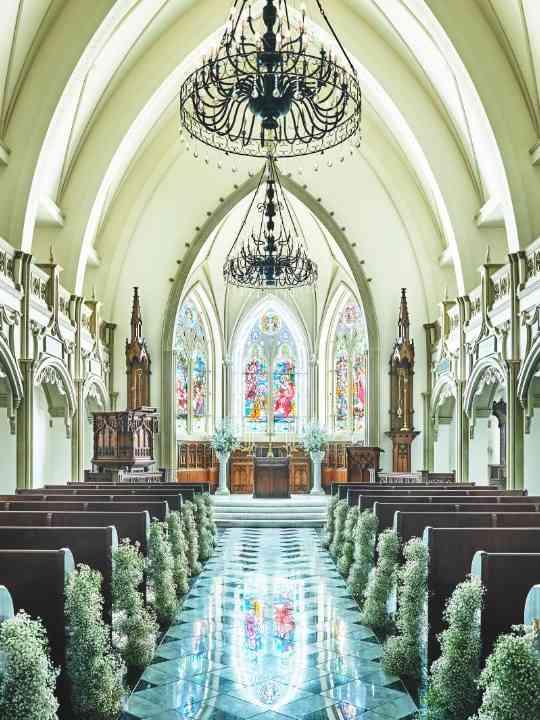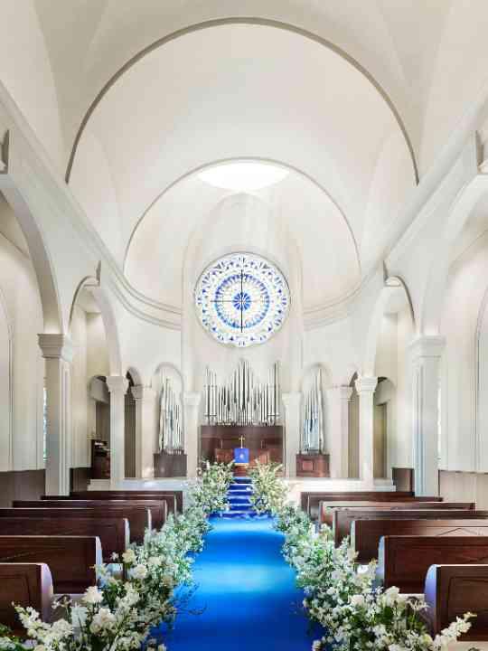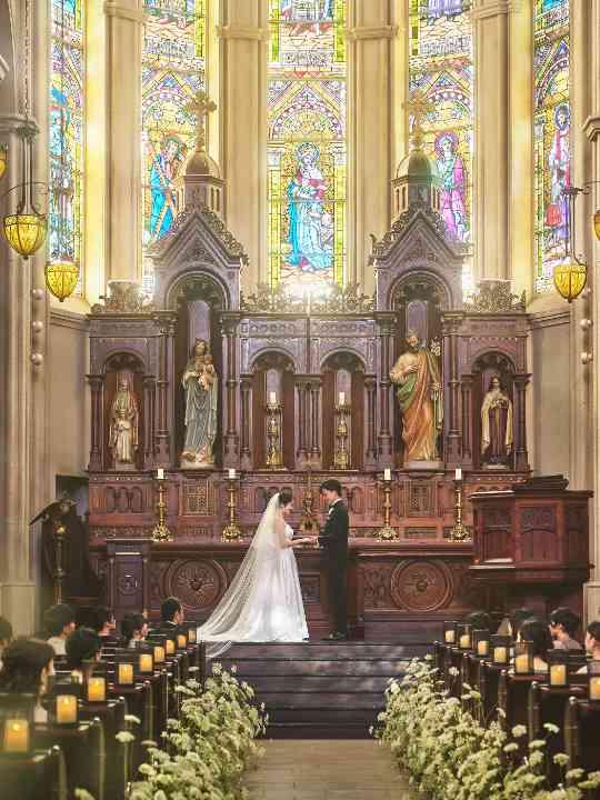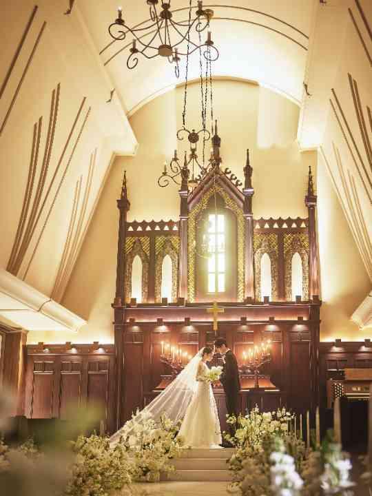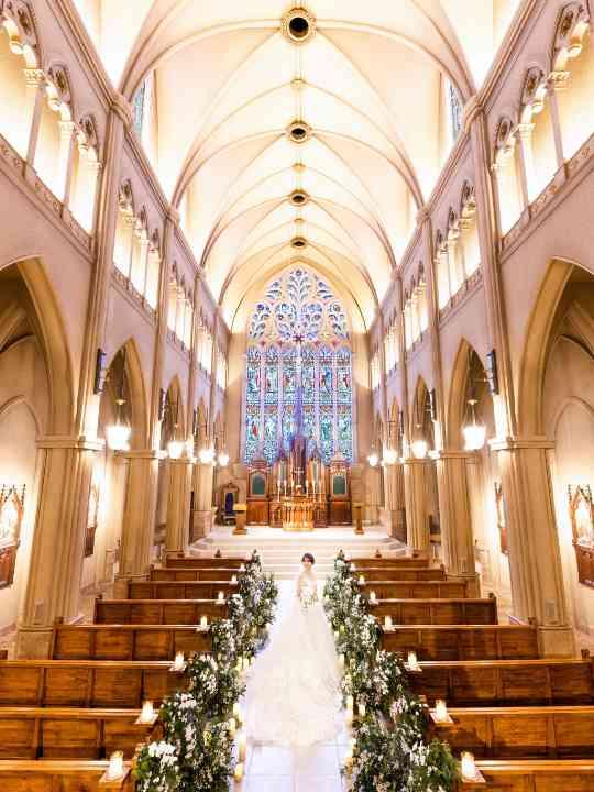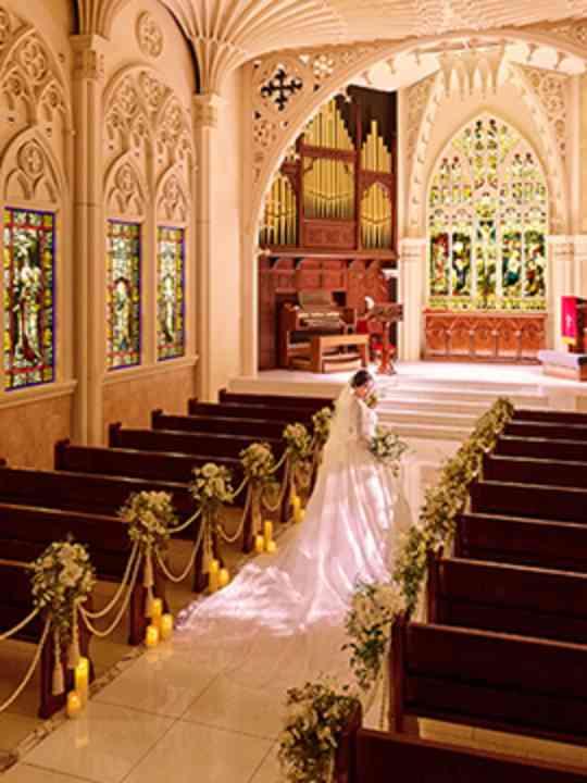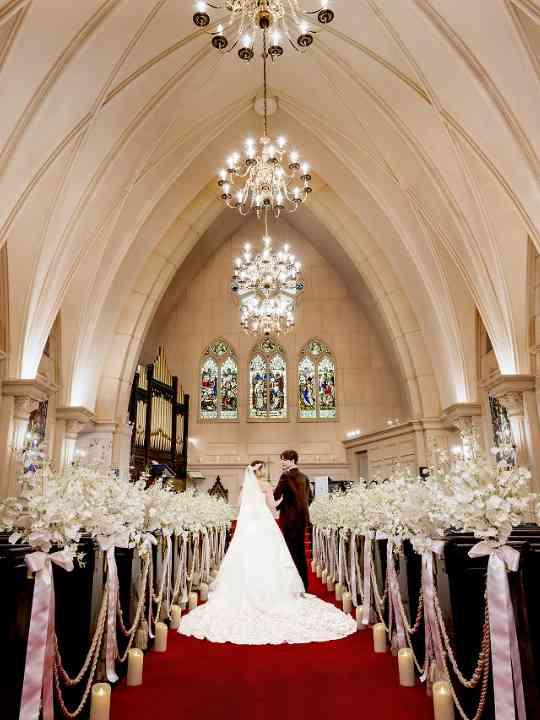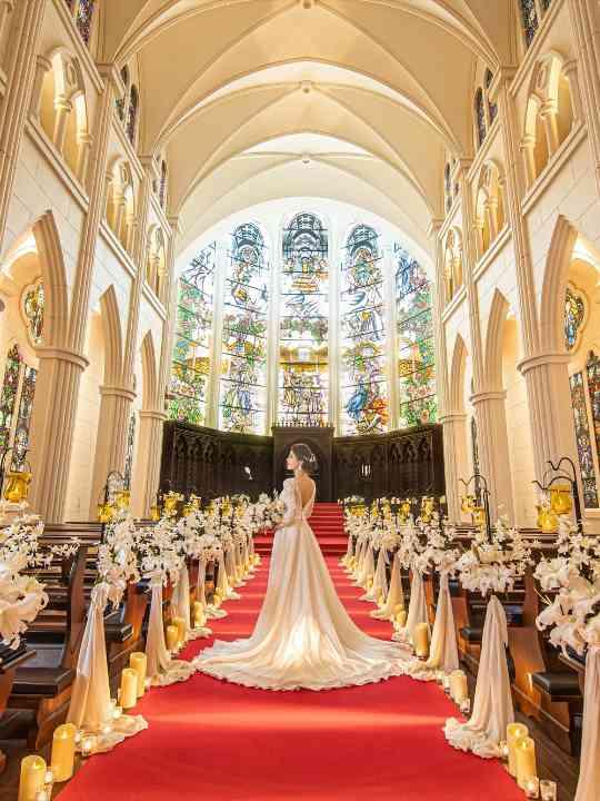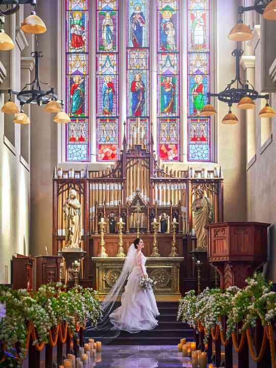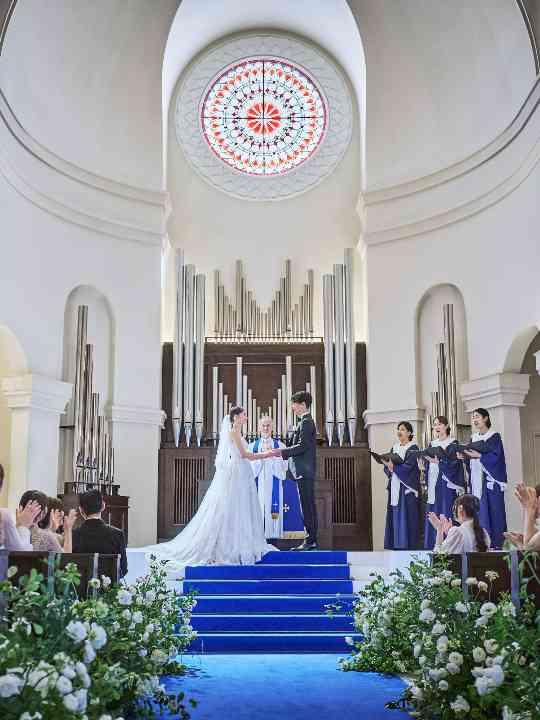 パイプオルガンや聖歌隊の合唱が響き渡り、非日常感たっぷりでドラマティックな結婚式が挙げられます。