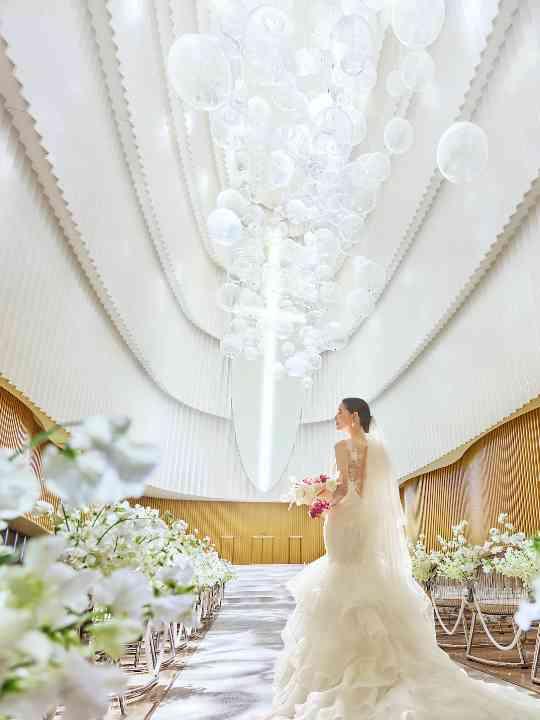 フォトジェニックな空間が、純白のウエディングドレスをまとった花嫁を美しく引き立てます。