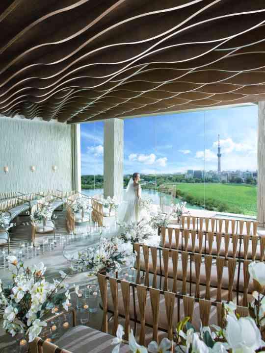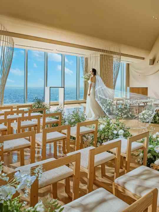 高層階からの絶景は、昼の結婚式はもちろんナイトウエディングにも花を添えてくれます。