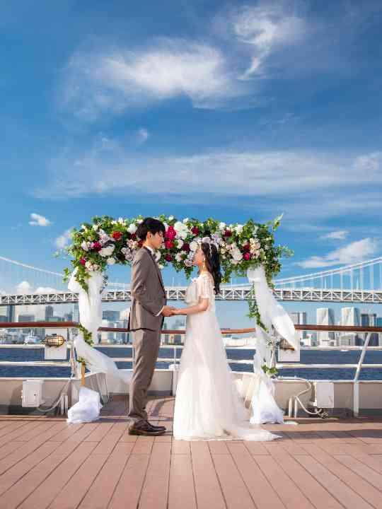 時間の流れを感じながら挙式の前後で変わる美しい景色を楽しんだり、写真を撮ったり、ゲストも思い思いに楽しめるはず。