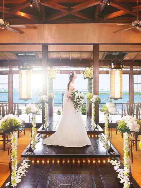 窓から差し込む陽射しが開放的でリラックスした雰囲気を作り、海外リゾートのような結婚式が叶います。
