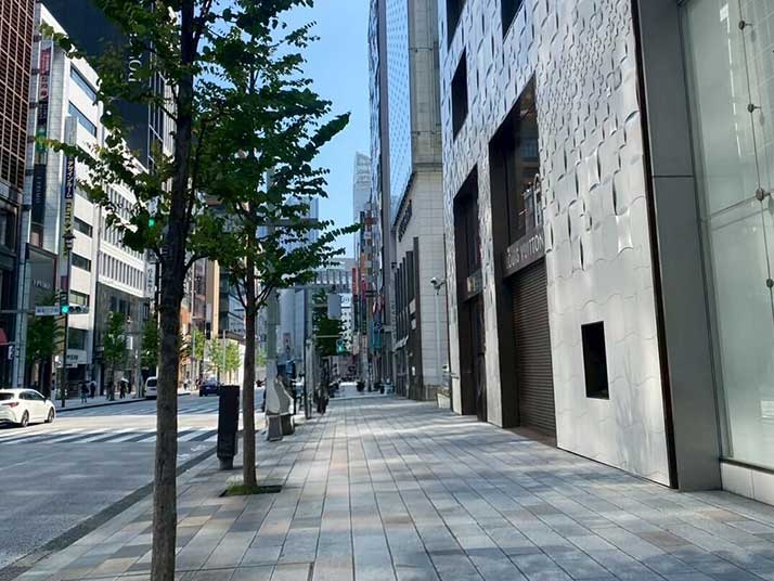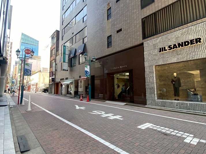 03 そのまま銀座マロニエ通りを直進し、JIL SANDERさんの店舗(提灯ガス通り)を左に曲がります。