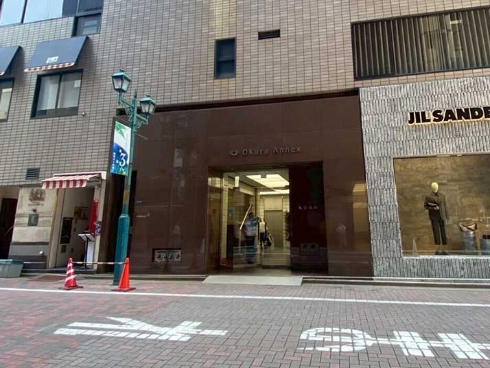 JIL SANDERさんの隣にある大倉別館入り口から入り、5階にお越しください。