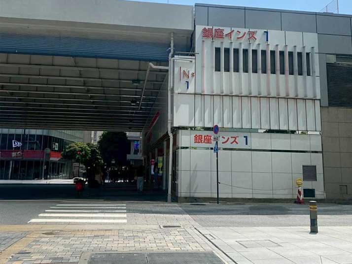 02 東京交通会館を左手に直進し、銀座インズの高架をくぐり、銀座西二丁目交差点の横断歩道を渡ります。